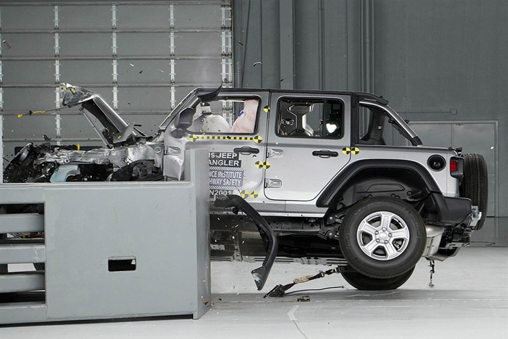 И вот этот краш-тест Wrahgler запорол по всем правилам. В отчете было сказано, что «частичное опрокидывание создает дополнительные риски травматизма и не вписывается в стандартные критерии для оценки повреждений травм при фронтальных краш-тестах». Отмечается, что в такой ситуации водителя и пассажиров может выбросить из салона, а опрокидывание набок не является приемлемым исходом для лобового столкновения. В результате общий рейтинг безопасности Jeep Wrangler оказался понижен до «минимального» (Marginal).