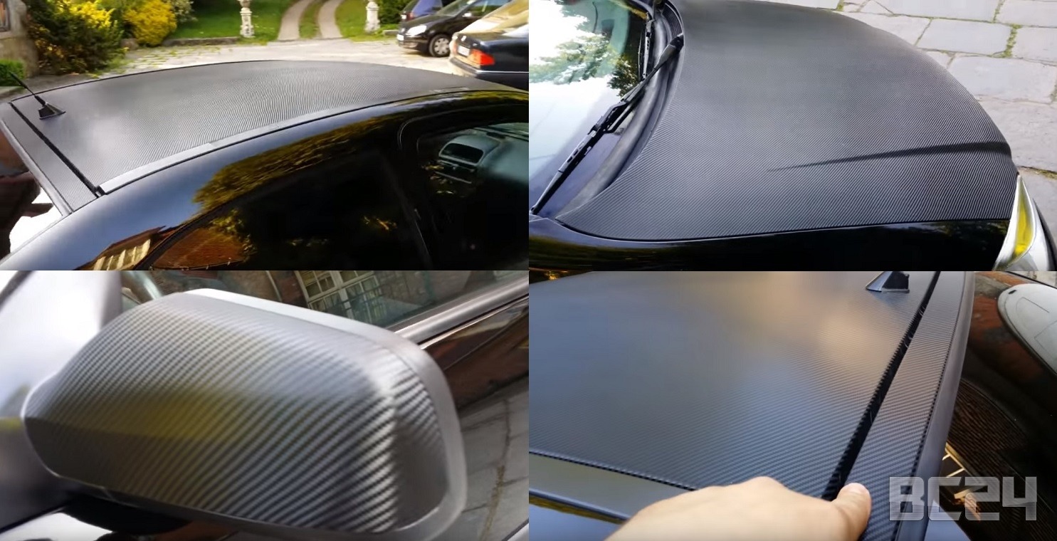 Мы также оклеили карбоном багажник, крышу и капот автомобиля. Смотрится просто шикарно.