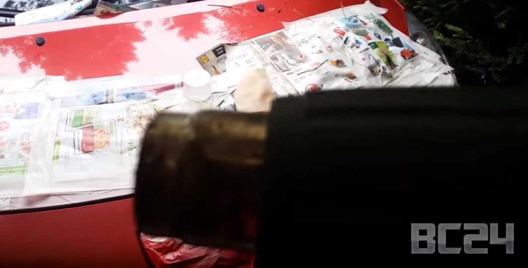 Очень тщательно встряхиваем и укрываем кузов с помощью скота и газет. Для того чтобы на определенные участки кузова не попала краска с баллончика.