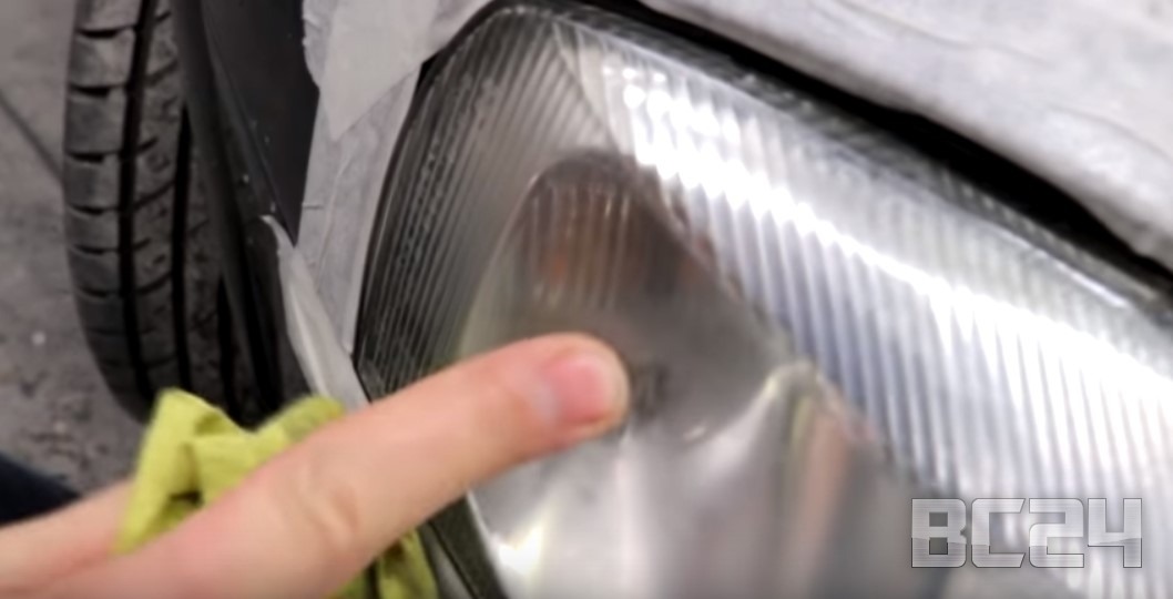 Время от времени протираем тряпкой фару и ищем ореолы, которые после также необходимо зашкурить.