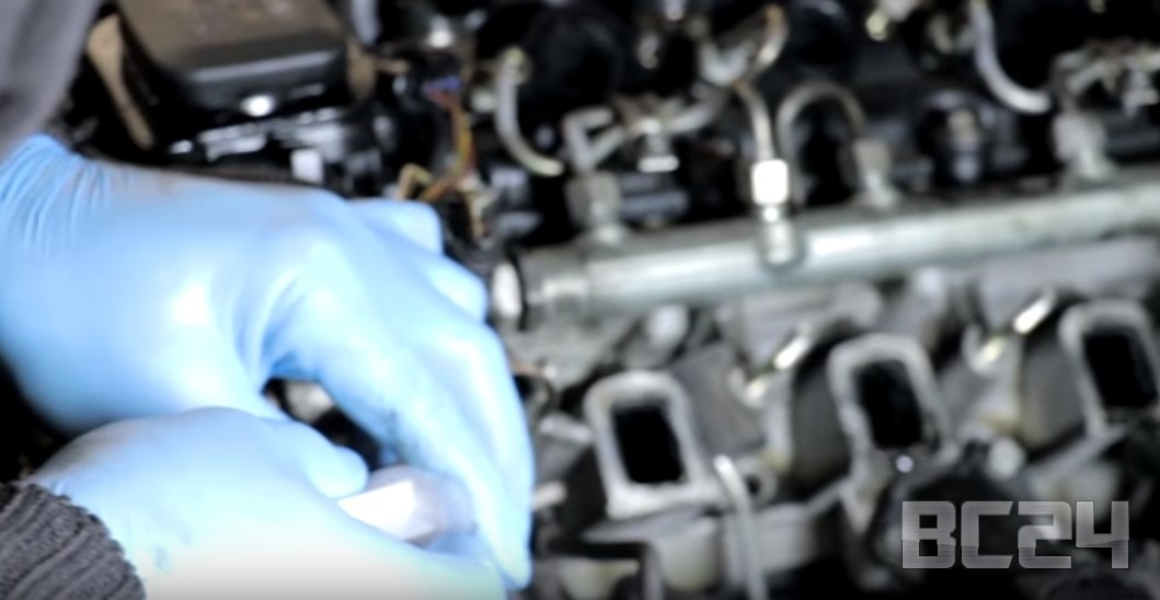 Это дизельный мотор и у нас 2 способа попасть в камеру сгорания — через форсунки (что осень долго и геморно) и через свечи накаливания. К последним тоже доступ не простой — нужно снимать впускной коллектор, но все же проще.