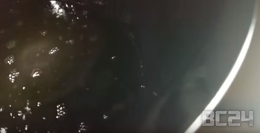 Мы заливали новое масло, а вот смотрите какое черное стекает в результате.