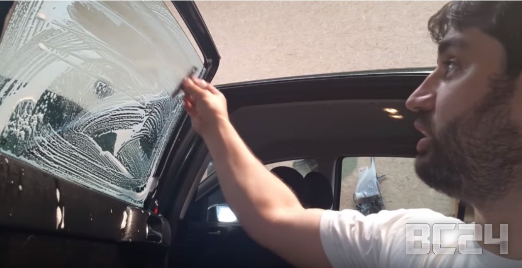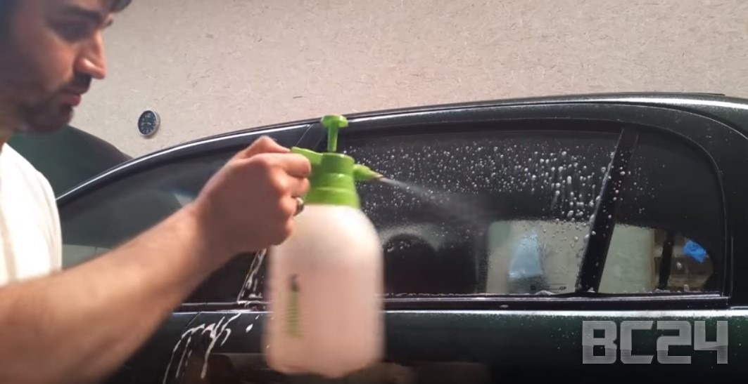 Обмываем наружную часть стекла, так как на ней мы будем делать выкройку и если она будет грязная, то ничем хорошим это не обернется.