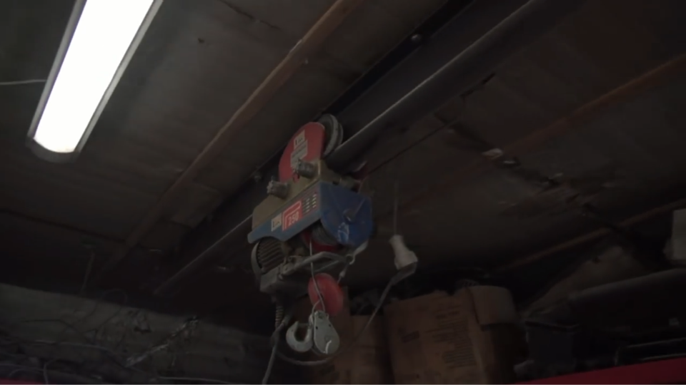 Грузоподъемность данного устройства порядка 250 кг, что вполне хватает для двигателя. И в отличие от гуся гидравлического, с помощью которого вытаскивают из автосервиса там всякие моторы, коробки. Она не занимает места.