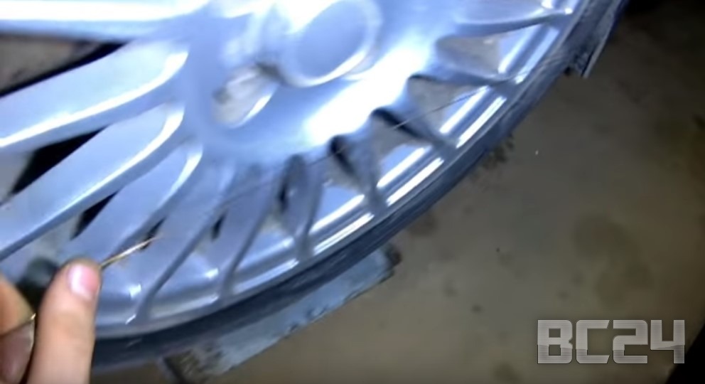 Начнем делать проверку развала колес. Для этого нам понадобится отвес. Желательно чтобы он был плоский и на мягкой нитке.