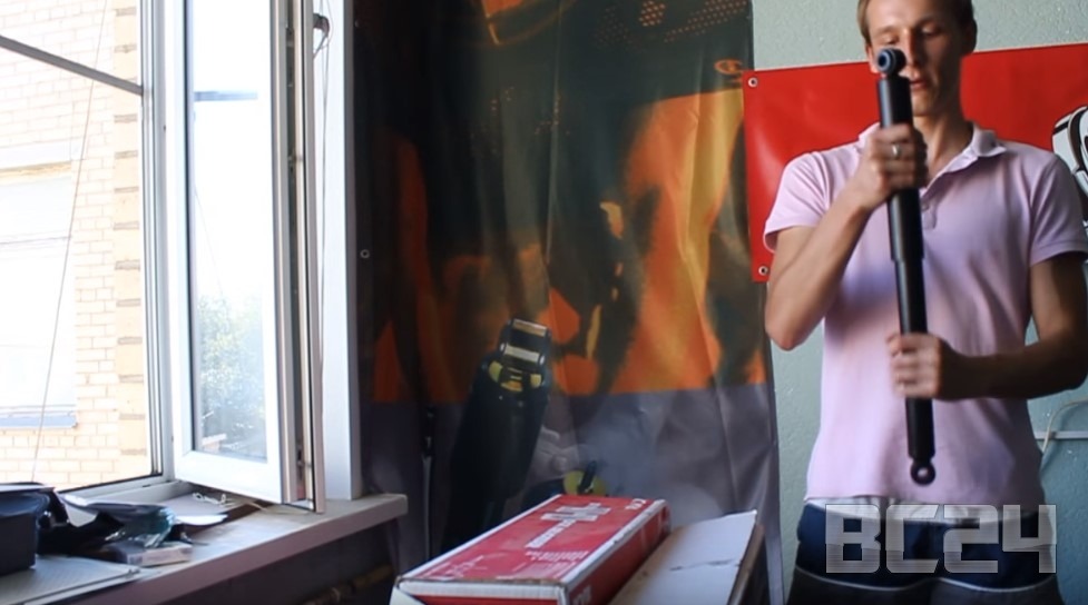Шток данного амортизатора при всем желании опустить даже двумя руками у меня не получилось.
