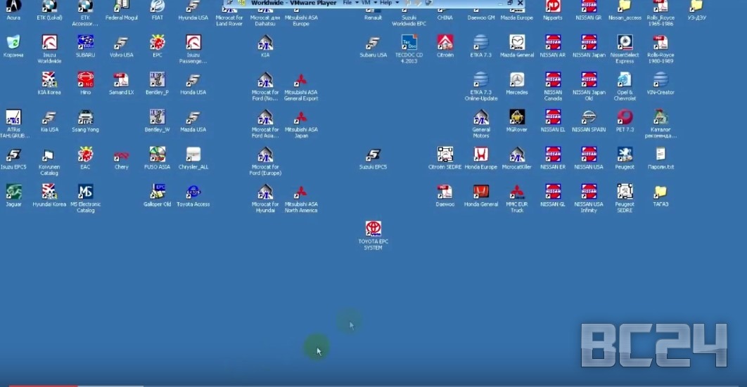 Заходим в программу с каталогами VMware Player. Запускаем программу Тойота и выбираем страну производителя.