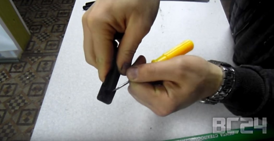 Сначала нужно открепить клипсу со щетки, для этого воспользуемся отверткой.