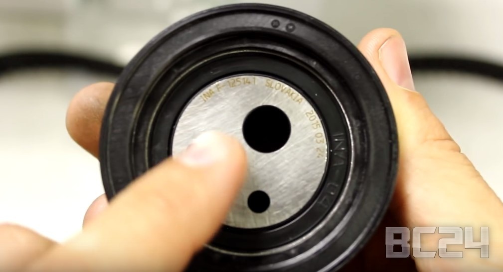 На ролике на натяжной части также выдавлена маркировка INA, артикул и производство Словакия.