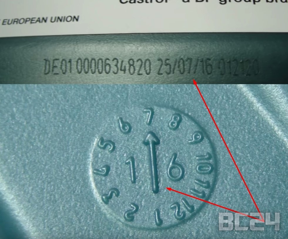Обратите внимание на дату производства. На фото она 25 июля 2016 года. Переворачиваем упаковку и смотрим на дне коробки. Здесь на специально выдавленном циферблате видно, что дата совпадает 2016 год 07 месяц.