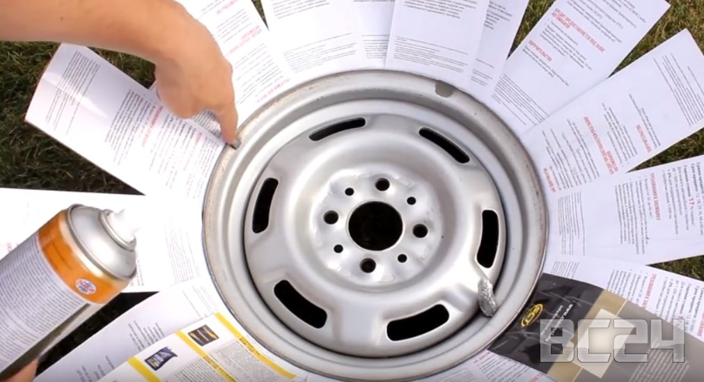 Воспользуемся картами, но не для того чтобы поиграть, а для защиты самой резины от попадания краски. Вставим карты по контуру диска. Теперь когда мы будем красить диск, краска не будет попадать никуда, кроме как на поверхность диска.