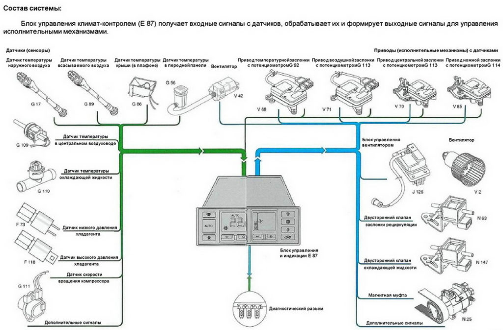 Схема любой системы КК включает в себя множество различных элементов, каждый из которых выполняет определенную функцию. Причем, чем новее автомобиль, тем больше компонентов и механизмов будут входить в схему.